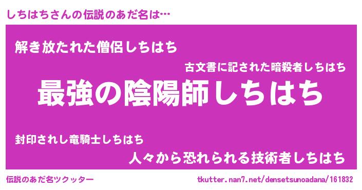 | 男性向けラノベタイトル風あだ名 | 『うちのしちはちが世界を掌握している!』 |