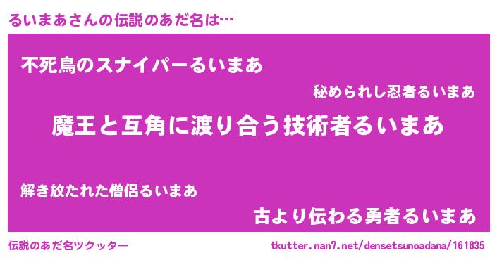 | ヘコむあだ名 | 『るいにー』『るいまあ(震え声)』 |