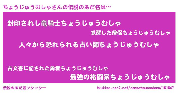 | ヒーロー風カッコイイあだ名 | 『正義の使者ちょうじゅうむしゃ』 |