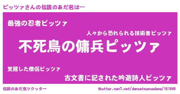 | ヒーロー風カッコイイあだ名 | 『スーパーピッツァ』『仮面ピッダー』 |