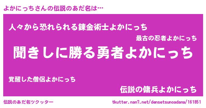 | 意味不明あだ名 | 『永久保存よかにっち』『自称よかにっち』 |