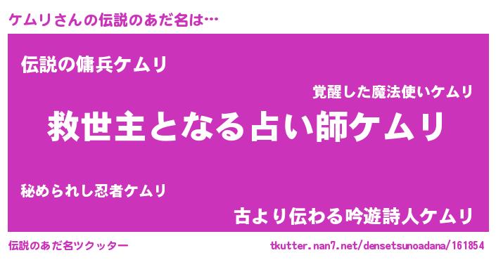 | ヒーロー風カッコイイあだ名 | 『慈愛の使者ケムリ』『超時空戦士ケムリ』 |