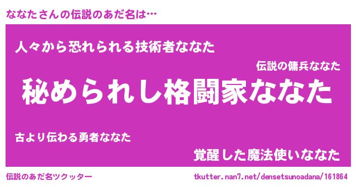 | ヒーロー風カッコイイあだ名 | 『ウルトラななたマン』『暗黒騎士ナナ』 |