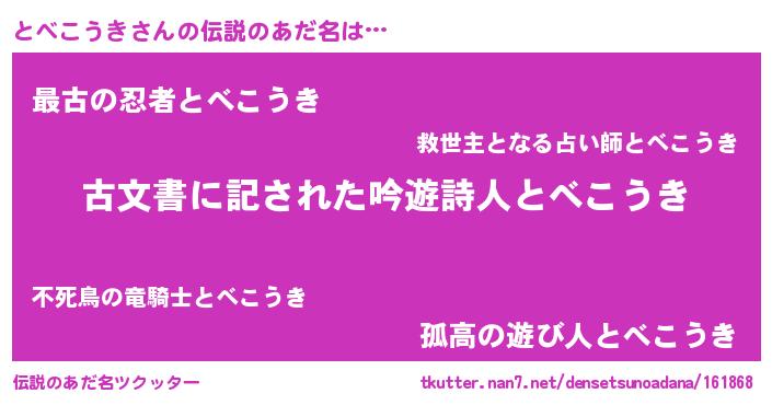 | ファンタジー風あだ名 | 『トベディッシュ』『ヴァルトベーナ』 |