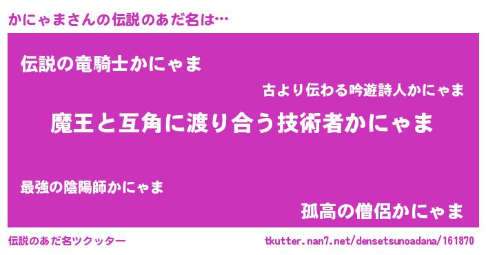 | ヒーロー風カッコイイあだ名 | 『愛の使者かにゃま』『スーパーカニャマ』 |