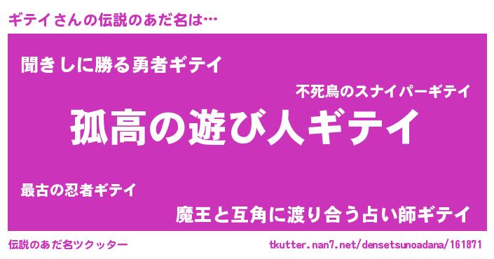 | ヘコむあだ名 | 『ギテぷりん』『ギテイ(笑)』 |