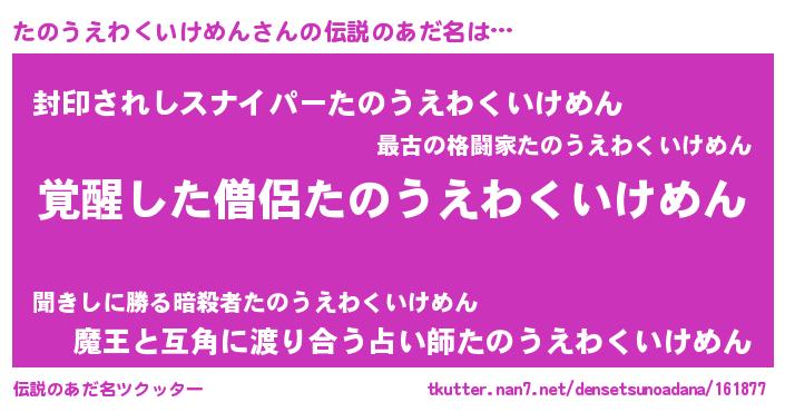 | 意味不明あだ名 | 『とにかく怪しいたのうえわくいけめん』 |