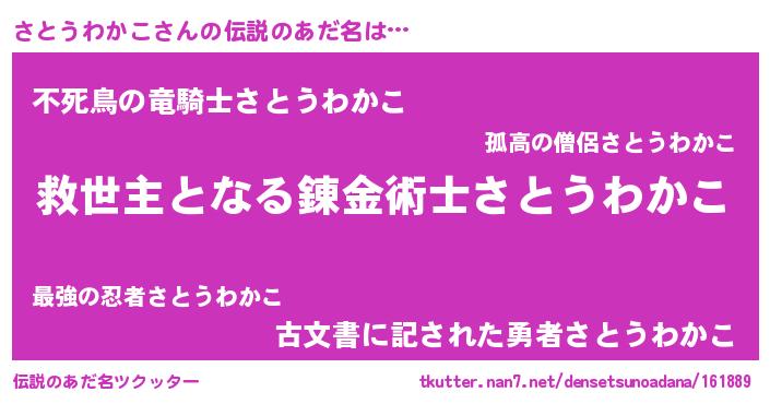 | ヒーロー風カッコイイあだ名 | 『慈愛の使者さとうわかこ』 |