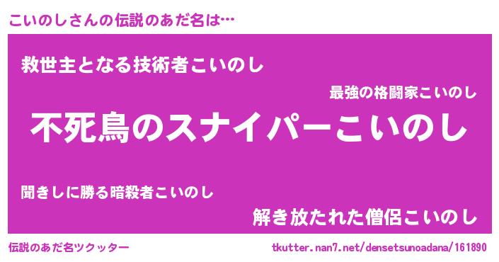 | 意味不明あだ名 | 『住所不定無職こいのし(84歳)』 |
