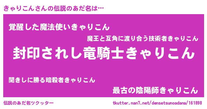 | 意味不明あだ名 | 『ヨモギ科きゃりこん属』 |