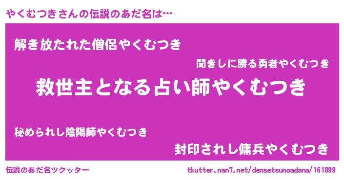 | 男性向けラノベタイトル風あだ名 | 『ノーゲーム・ノーヤクムツキ』 |