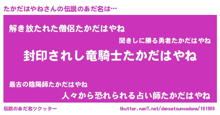 | 胡散臭い通販商品みたいなあだ名 | 『億万長者になれるブレスレット…その名も「たかだはやね」』 |