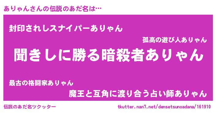 | 胡散臭い通販商品みたいなあだ名 | 『絶対に幸福をもたらす健康食品…その名も「ありゃん」』 |