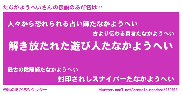 | 意味不明あだ名 | 『住所不定無職たなかようへい(81歳)』 |