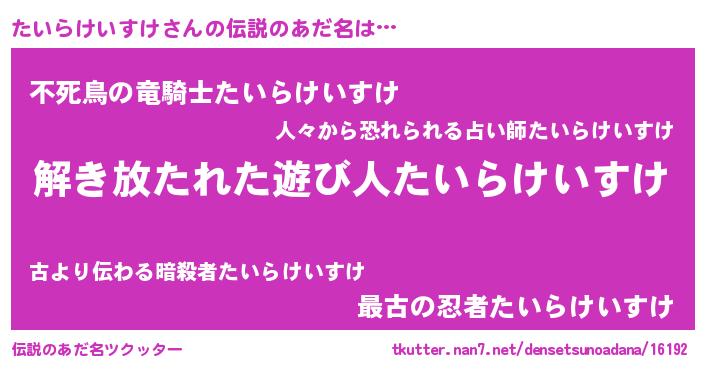 | 胡散臭い通販商品みたいなあだ名 | 『伝統あるペンダント…その名も「たいらけいすけ」』 |