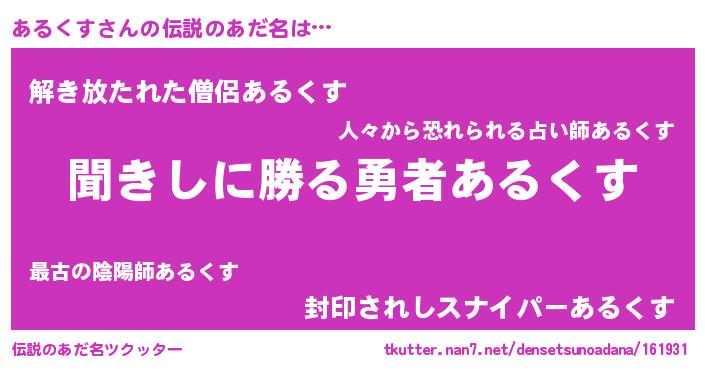 | ヘコむあだ名 | 『あるくす(苦笑)』『あるを』 |