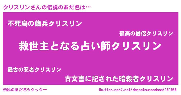 | 意味不明あだ名 | 『自称クリスリン』『ペロリンクリスリン』 |