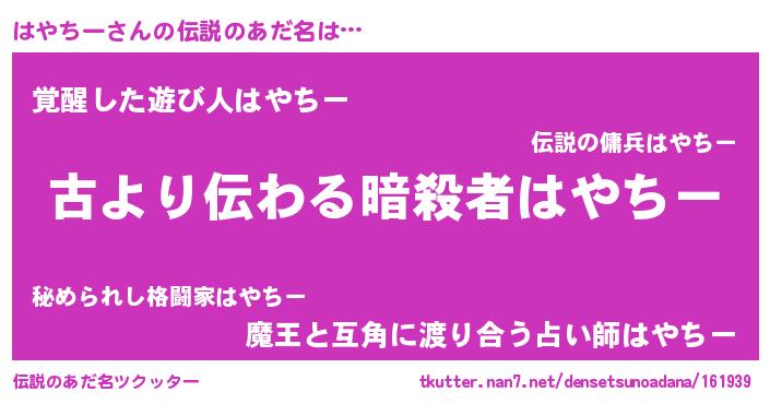 | ヒーロー風カッコイイあだ名 | 『ネオハヤチー』『幻影騎士ハヤ』 |