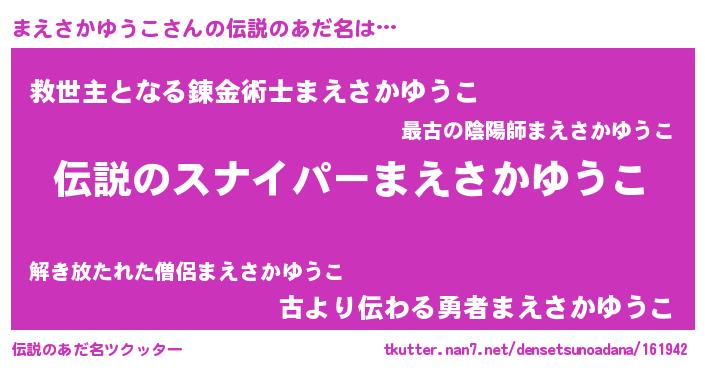 | 意味不明あだ名 | 『自称まえさかゆうこ』 |