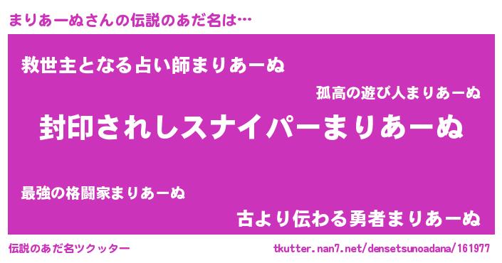| ヒーロー風カッコイイあだ名 | 『スーパーマリアーヌ』『ネオマリアーヌ』 |