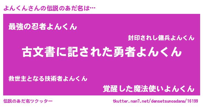 | 意味不明あだ名 | 『自称よんくん』『永久保存よんくん』 |