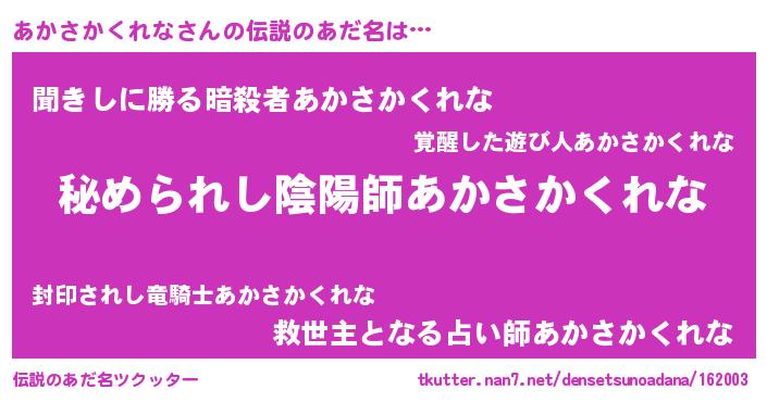 | 意味不明あだ名 | 『あかさかくれなフォーエバー』 |