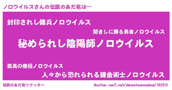 | ファンタジー風あだ名 | 『エターナルノロウイルスー』 |