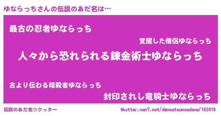 | 男性向けラノベタイトル風あだ名 | 『おまえをオタクにしてやるから、俺をゆならっちにしてくれ! 』 |