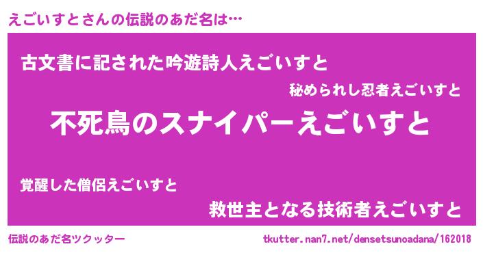 | ヘコむあだ名 | 『えごもー』『えごいすと(笑)』 |