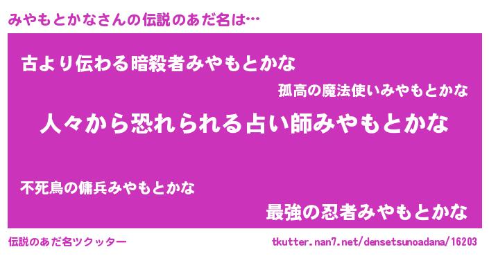 | 意味不明あだ名 | 『自称みやもとかな』 |