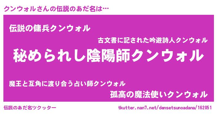 | 男性向けラノベタイトル風あだ名 | 『魔法科高校のクンウォル』 |
