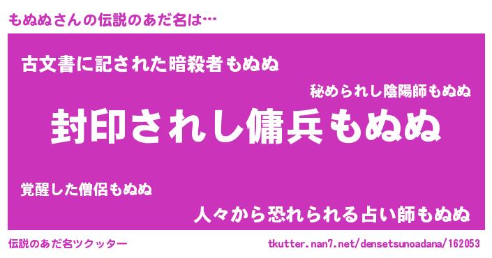 | 胡散臭い通販商品みたいなあだ名 | 『億万長者になれる水晶球…その名も「もぬぬ」』 |