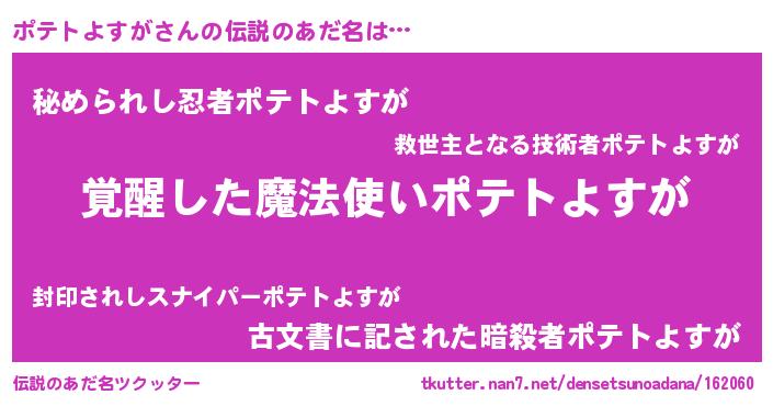 | 胡散臭い通販商品みたいなあだ名 | 『全米が絶賛したサプリメント…その名も「ポテトよすが」』 |