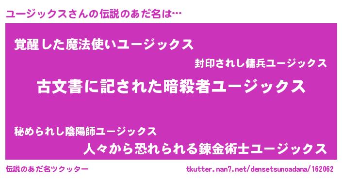 | ヒーロー風カッコイイあだ名 | 『仮面ユーダー』『ネオユージックス』 |