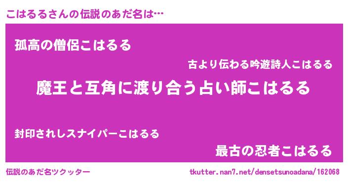 | ヒーロー風カッコイイあだ名 | 『友情の使者こはるる』『暗黒騎士コハ』 |