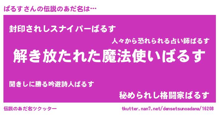 | 意味不明あだ名 | 『とにかく怪しいばるす』『自称ばるす』 |