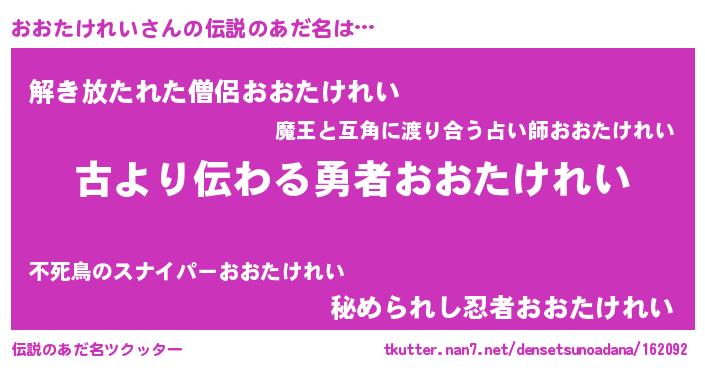 | ヒーロー風カッコイイあだ名 | 『ネオオオタケレイ』『暗黒騎士オオ』 |