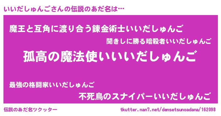 | 胡散臭い通販商品みたいなあだ名 | 『信頼と実績のサプリメント…その名も「いいだしゅんご」』 |