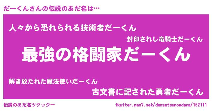 | ヒーロー風カッコイイあだ名 | 『ウルトラだーくんマン』『仮面ダーダー』 |