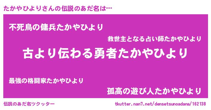 | 意味不明あだ名 | 『永久保存たかやひより』 |