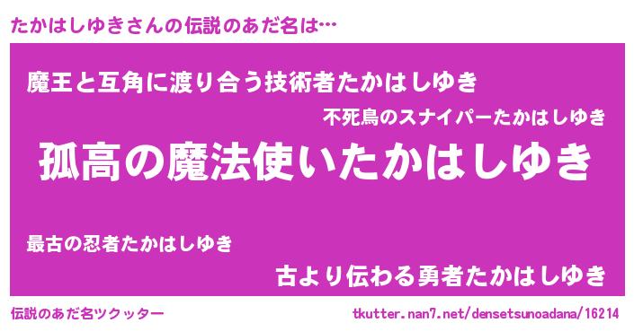 | 男性向けラノベタイトル風あだ名 | 『ダンジョンにたかはしゆきを求めるのは間違っているだろうか』 |