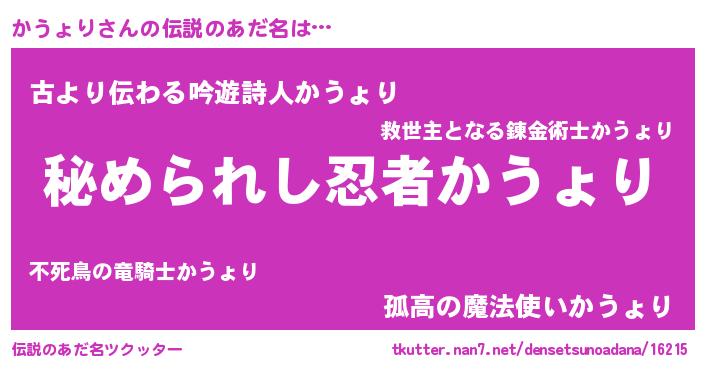 | 欧米人風あだ名 | 『かうょり・ステッグマイヤー』 |