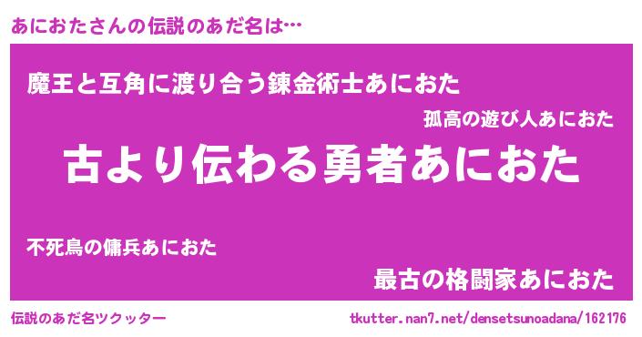| 意味不明あだ名 | 『永久保存あにおた』 |