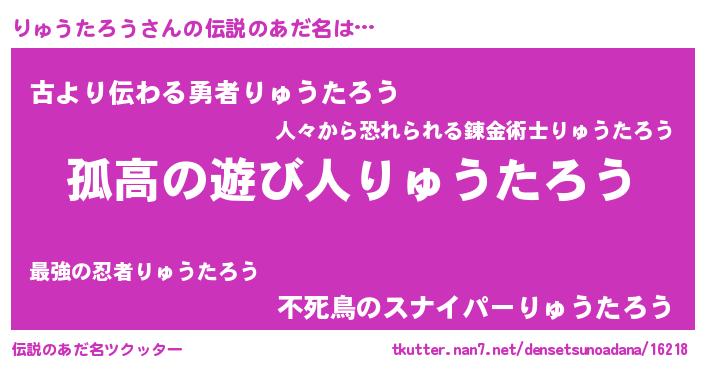 | 男性向けラノベタイトル風あだ名 | 『ダンジョンにりゅうたろうを求めるのは間違っているだろうか』 |