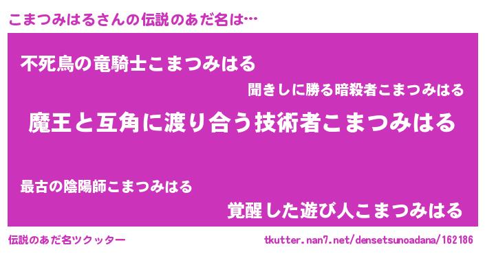 | 意味不明あだ名 | 『住所不定無職こまつみはる(3歳)』 |