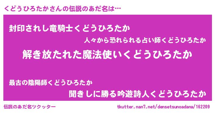| 意味不明あだ名 | 『とにかく怪しいくどうひろたか』 |