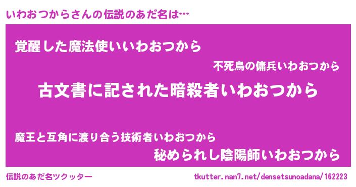 | 意味不明あだ名 | 『永久保存いわおつから』 |