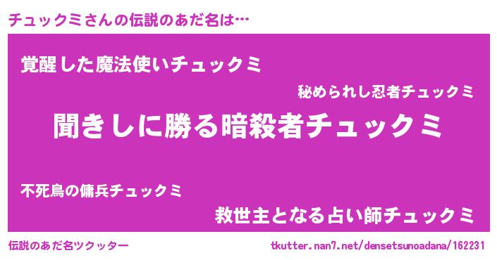 | ヒーロー風カッコイイあだ名 | 『ネオチュックミ』『幻影騎士チュ』 |