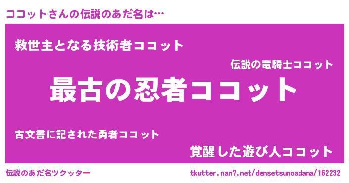 | ヒーロー風カッコイイあだ名 | 『ウルトラココットマン』『仮面ココダー』 |