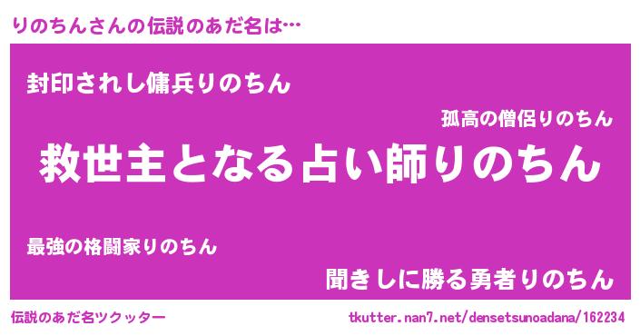 | 女子向けラノベタイトル風あだ名 | 『死神りのちんの再婚』『闇のりのちん』 |